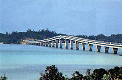 橋から望む碧緑色に輝く海は想像を絶する美しさ。