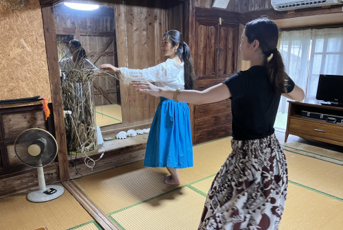 伊是名島に着いたら民泊TAROYAで沖縄らしいブレスレットつくり体験をします。天気が良ければ近くの伊是名ビーチでハワイアンフラができるかも!?