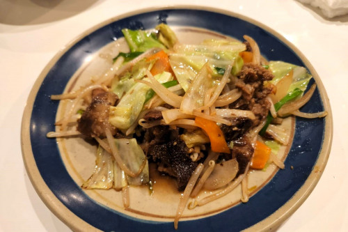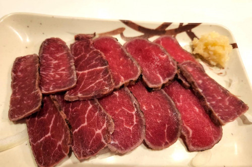 メニューは、牛肉のタタキ、豆腐チャンプルー、ソーミンチャンプルー、モツチャンプルー、牛肉もやし炒め、牛汁、山羊汁、ビーフカレー、ナスのあげだし、ポテトフライ等どれを食べてもおいしいです。