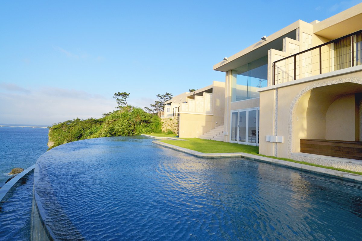 沖縄本島随一の美しさを誇るスカイブルーの海と古宇利島を臨むUMIZORA(ウミゾラ)。