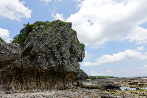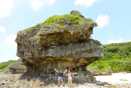この浜は「ぐしちゃんはま」と呼ばれ、草地と砂浜が入交じり数百メートル続く海岸には多くの奇岩を見ることができます。