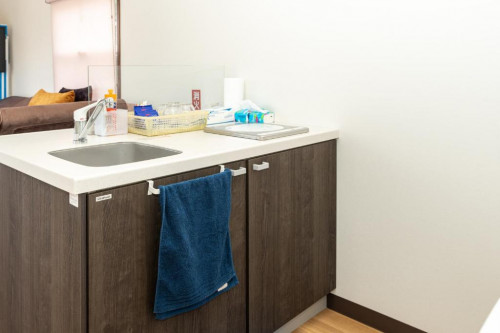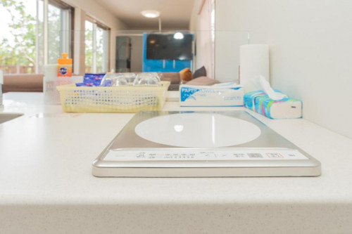 調理器具一式が揃っているので、ご家族やお友達同士で、お食事を作って食べることができます。食材はお隣の中城モール1階にある食品スーパーもしくはコンビニで調達ができます。