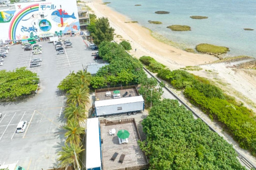 宿泊場所は中城モール裏のビーチサイドに建つコンテナハウス。広いプライベートデッキがついた1棟貸しタイプで、優雅に沖縄を満喫しながら英会話が学べます。宿泊者は1泊につき1時間の英語レッスンがついてきます!