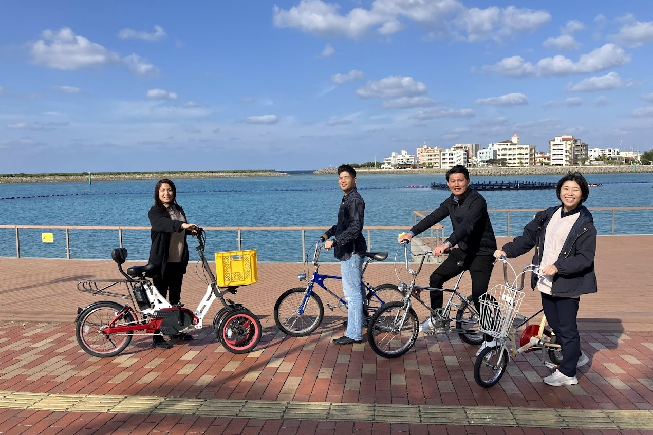 そこで当記事では、その悩みを解決するための自転車プランをご紹介しました。今回利用したうちの一台は三輪の電動アシスト自転車です。体力に自信のない方やスカートを履いている方でも安心して乗れる設計になっています。また、大きなカゴが付いているため、買い物にも便利です。これを活用すれば、北谷町西海岸の2つの素晴らしい風景や潮の香りを楽しみながら、グルメやショッピングも満喫できるのではないでしょうか。