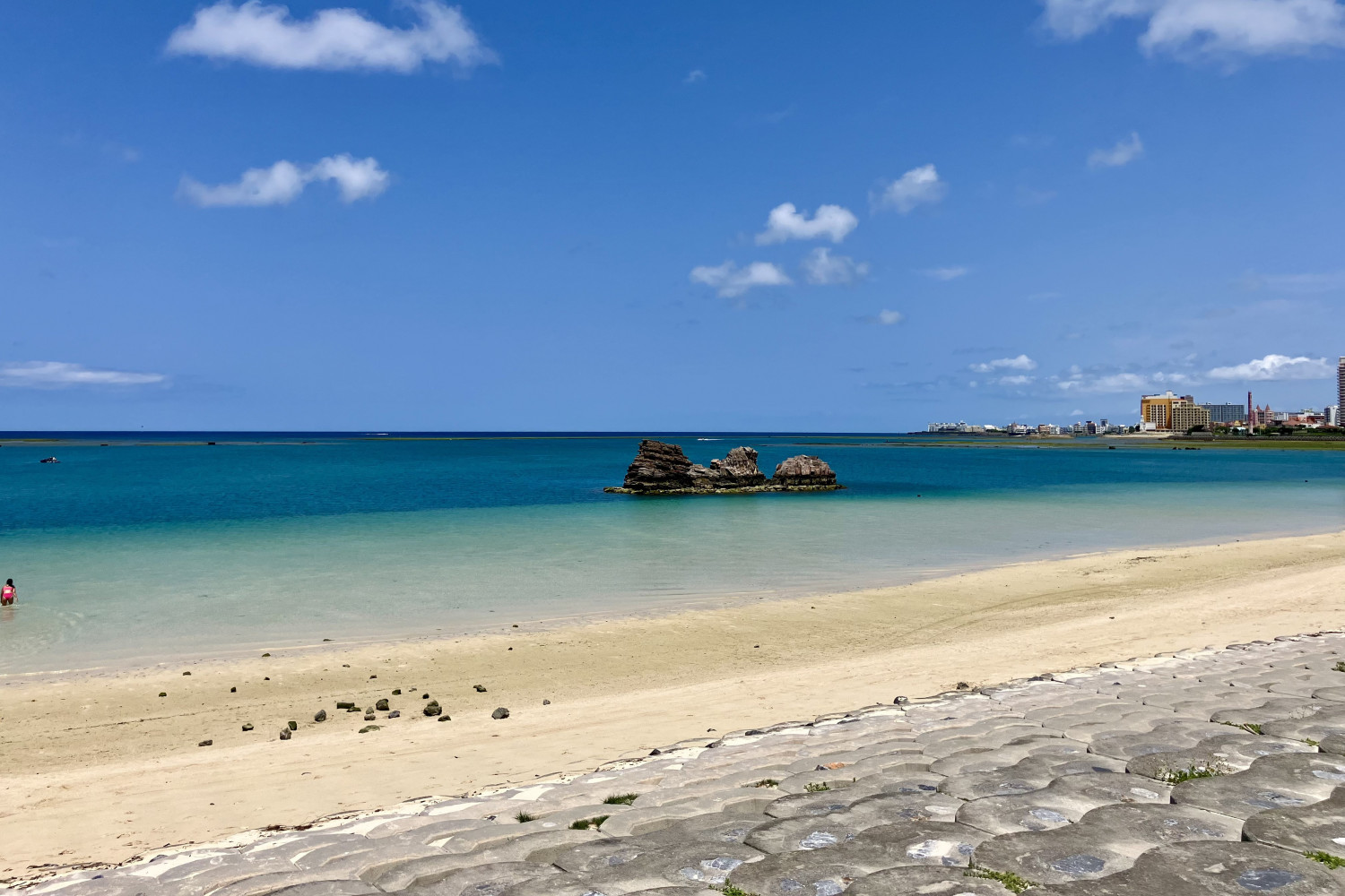 砂辺エリアの海岸線は岩場が多く、波が高いためサーフィンなどのマリンスポーツに適しています。一方、安良波エリアでは、アラハビーチやサンセットビーチといった白い砂浜と美しい海が広がり、海水浴や散策を楽しむのにぴったりの場所です。このように、北谷町の西海岸にはそれぞれ異なる魅力を持つエリアがありますが、唯一の悩みは、それらのエリア間の距離が歩くには少し遠いという点でした。
