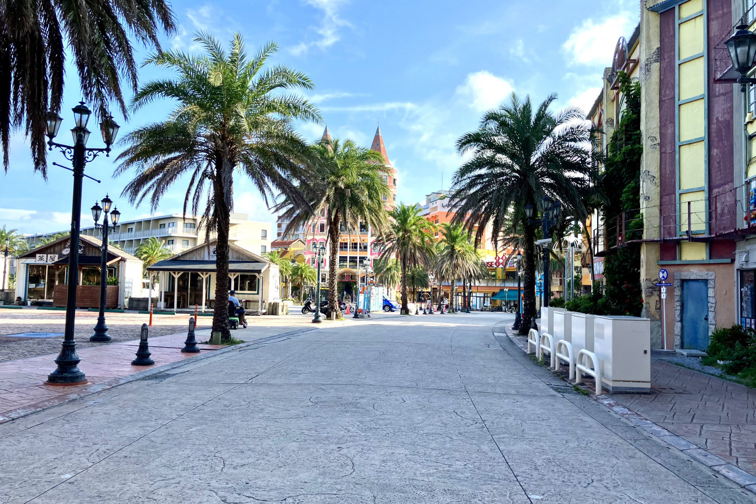 美浜エリアには「アメリカンビレッジ」があり、ショッピングやグルメを楽しむことができます。サイクリングの合間に立ち寄ることで、北谷町のリゾート感を存分に味わえます。