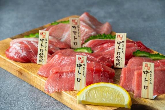 他のまぐろに比べて、目がぱっちりして大きいのが特徴です。クロマグロと比較すると脂は少なめですが、比較的脂がのっていて濃い味です。