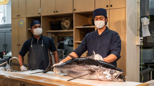 2022年10月にリニューアルオープンした「まぐろ屋みーかがん沖縄」は、まぐろ一筋30年の三高水産直営のレストランで、沖縄まぐろの迫力と、各部位の美味しさを、見て、食して、知ることができる一軒です。