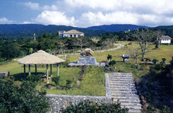 国頭連山や羽地(はねじ)内海が一望できる景勝地。イタジイの木々に囲まれた森の中に、バンガローや樹上ハウスやキャンプ場、多目的広場に憩いの広場、3kmの林間遊歩道などがあり、野鳥のさえずりや四季折々の植物を楽しむことができます。園内にはおもちゃ美術館や大きな湖もあります。