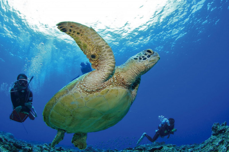 沖縄県内でも行ったことのある人は少なく、「秘島」と呼ばれることもある「水納島」。ウミガメの生息地にもなっており、島周辺の透明度の高い海でウミガメと一緒に泳げることもあります。