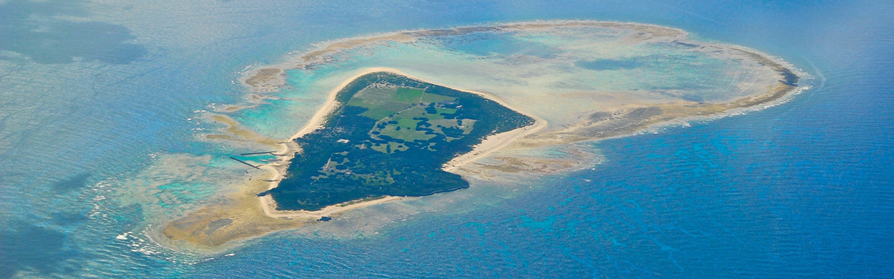 水納島は多良間島から北に9.5km先にある、サンゴ礁と白砂に囲まれた、手付かずの自然が残る島です。 かつては250人以上の島民が暮らし、小中学校もありましたが、現在は数世帯のみとなり、多良間島からの定期便はなく、チャーター船を利用して約15分で島へ渡ることができます。 エメラルドグリーン色の海は透明度が高く、ウミガメの生息地にもなっています。