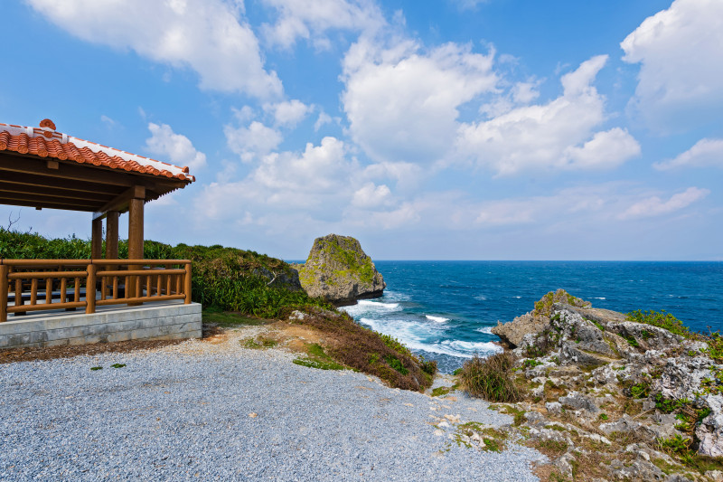 海岸と並行して伸びるリーフは、ダイビングの人気スポットとして国内外に知られており、年間を通して多くのダイバーが訪れます。崖の下には「青の洞窟」があり、神秘的な光景と出会えます。シュノーケルも楽しめますが、潮の流れが強い日は注意が必要です。また、真栄田岬はサンセットスポットとしても有名で、敷地内の広場や東屋でくつろぎながら、水平線に沈む夕陽が眺められます。展望台もあるので、泳がない人も気軽に楽しめます。