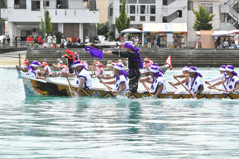 「海人(うみんちゅ)」と呼ばれる漁師たちが中心となり、大漁・航海安全・家内繁盛などを海神に祈願する「糸満ハーレー」。毎年旧暦5月4日(新暦5月下旬~6月頃)に行われる伝統行事で、糸満の旧暦文化を代表する祭りとして知られています。地区や集落の誇りをかけて、勇壮かつ迫力ある競漕が行われ、応援する側も思わず熱がこもります。