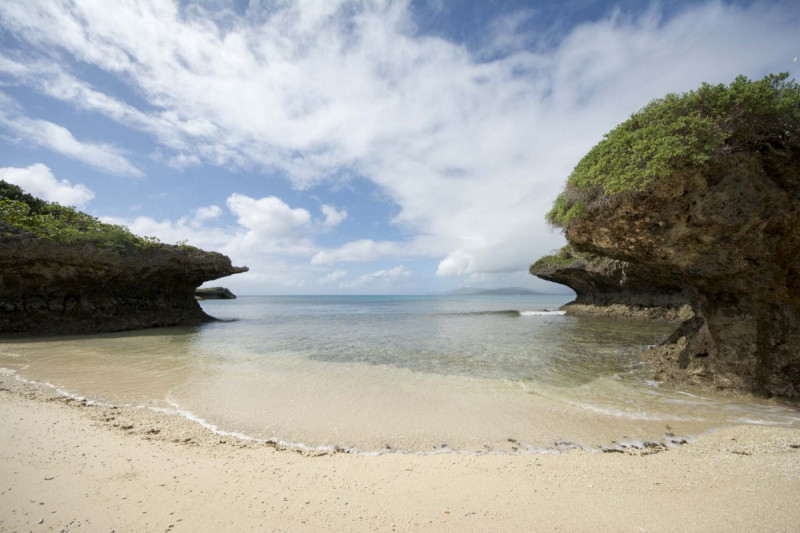 黒島と西表島の中間に位置する新城島は、上地島と下地島の2島からなっており、島の間隔はおよそ400mほど。浅瀬のため、干潮時にはリーフを歩いて渡ることができます。