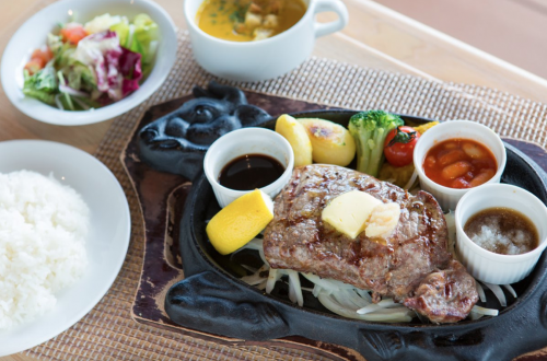 古宇利大橋のふもとにある観光拠点施設として、2022年4月にリニューアルオープン。レストランやお土産店、パーラーなどがあり、島に訪れたらまずここへ、という定番スポットです。こちらでちょっと休憩がてらお土産をチェックしたら、レンタサイクルを借りて、島内巡りスタートです!