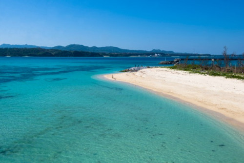 那覇空港からバスで約3時間 (那覇空港 バスのりば② やんばる急行バス(空港線)「那覇空港」乗車→「本部博物館前」乗り換え→やんばる急行バス(四島線)→「古宇利島物産センター」下車
