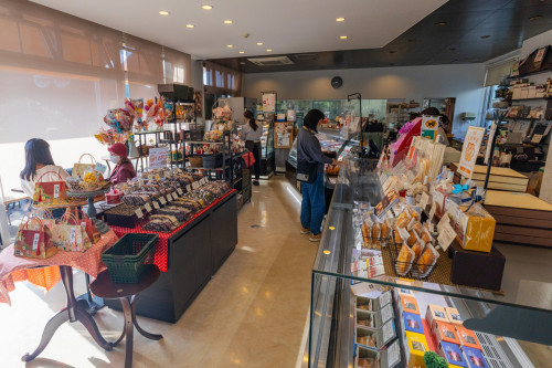 首里金城町の石畳道を下りきり、繁多川公園の緑を右手に見ながら歩いていくと、金城ダムの手前にある地元で人気のケーキ屋さん。店名にもなっているチョコレートケーキ「ショコラ」をはじめ、沖縄のフルーツやお酒を使った珍しいケーキや焼き菓子など、お菓子の種類はかなり豊富。あれこれ悩んだ商品は、店内のイートインスペースで気軽に食べることができます。お土産におすすめなのは、首里の4つの食材、新垣養蜂園の「首里王朝蜂蜜」、瑞泉の泡盛、玉那覇(たまなは)味噌の味噌、繁多川(はんたがわ)の島豆腐を使った創作フィナンシェ「Shulien(シュリアン)」。パッケージにも首里城が描かれていて華やか。4種類を詰め合わせた箱入りもあります。