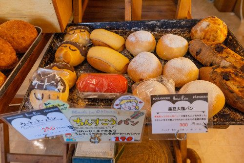 世界遺産の識名園からほど近い、フランス仕込みの美味しいパンとケーキのお店。お店に入ると、手を合わせた「うーとーとーパン」やかわいい「紅白ちんすこうパン」などが並ぶパンコーナーに目を奪われます。注目したいのは、新しい沖縄銘菓として人気の「琉球世界遺産スイーツ」シリーズ。地元の老舗が焼き上げる薄めの塩せんべいと、フランスのお菓子フロランタンが融合した「識名園るうまんぺい(浪漫餅)」、スパイシーなカレー味の塩せんべいの上にピーナッツをキャラメリゼした「首里城かりーぺい(嘉例餅)」は今まで味わったことのない新感覚の美味しさ。そして、「もしも琉球国王がフランスのお菓子を食べたら..」という発想から生まれたという「琉球国王のティータイムクッキー」は黒糖サブレとさんぴん茶クッキーの2つの味のセット。いずれもバラ売り、箱入りがあるのでぜひ試してみて。