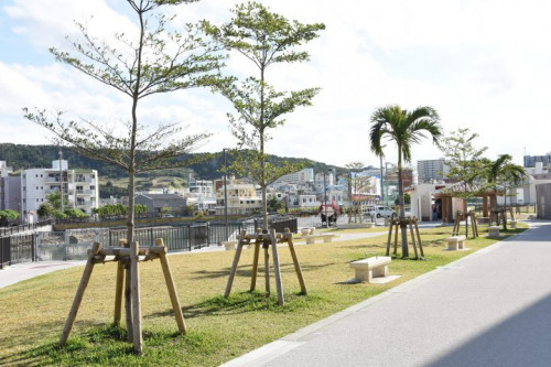 沖縄そば専門店与那原家の裏の水路沿いをゆっくり散策