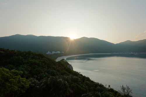 ビーチに出て右側(西側)に歩くとトンネルのようにくりぬけた大岩があらわれます。その大岩をくぐりぬけると、阿波連ビーチを一望出来る、阿波連展望台に行くことが出来ます。阿波連ビーチの背後の山からのぼる朝日は絶景です。