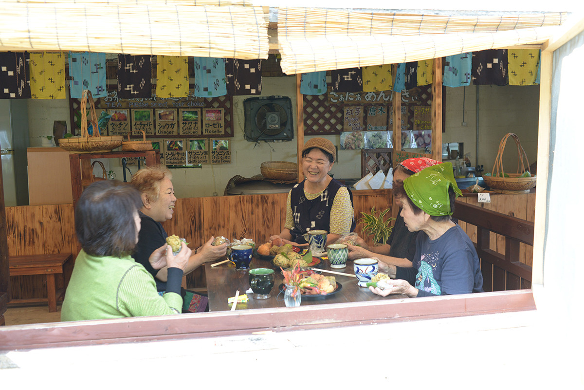 むかし、野菜は買うものではありませんでした。広くなくとも土のある地面を見つければ、畑に。種を植えて、気長に待ち、大事に野菜を育てました。炊事のたびに、ちょっとずつ収穫しては、みずみずしい味覚を食卓にのせました。小さな畑に、台所の神様に、いつも手をあわせました。それを今も当たり前につづけているおばぁたちが、沖縄本島北部の大宜味村にいます。ニガナ、カンダバー、イーチョーバー、フーチバー、ハンダマ…。おばぁたちの島野菜を眺めていると、工夫して料理をしたい気もちがあふれだしてきました。土や海とともにある暮らしのリズムや生きる知恵を伝え残していきたくて1990年「笑味の店」をオープンしました。