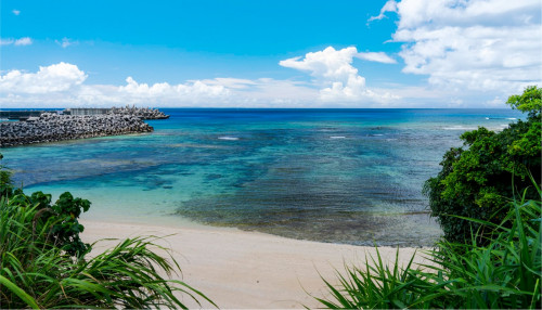 旅の始まりは、読谷村観光協会で情報収集から。地元情報をしっかりゲットしてください!読谷村観光協会のある地域振興センターにはフードコートもあるので腹ごしらえもできます。また近くには1月~3月限定でコスモス畑があります。そのあとは、世界遺産「座喜味城跡」、「やちむんの里」を巡り、沖縄の歴史や伝統的な文化を体感しましょう。