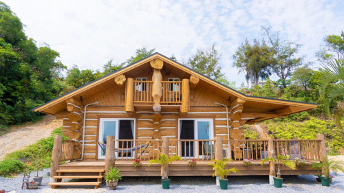 農園の森の奥に建つ、1日1組限定の本格的なログハウス宿