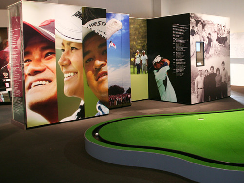 プロゴルファーの宮里聖志さん、宮里優作さん、宮里藍さん3兄妹を輩出した東村。東村文化・スポーツ記念館では、ゴルフ道具や幼い頃からの映像などを見ます。