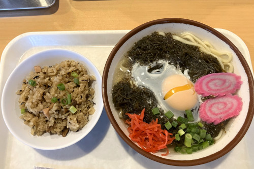 レストハウスかみやまで、名物ヤギそばor月見もずくそばで腹ごしらえしたら、渡船で伊平屋島に渡ります。ご希望の時間で予約ができます。