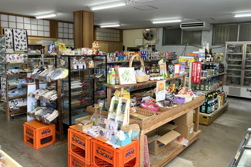 国頭村安田(あだ)は東海岸に位置する人口160名余の小さな集落。「安田協同店」はこの集落に唯一の店舗で、「共同」ではなく「協同」と書きます。「最初は他の地域と同じように『共同店』だったのですが、1950年に『協同店』に改称されました。皆で力を合わせて作り上げるという想いで改称したそうです。2024年2月から安田区直営に戻り、地元産の農水産物が店頭により多く並ぶようになりました。安田区で工房を構える作家さんが、日本古来の技法で両面同時に染め上げた日本手拭いも人気です。