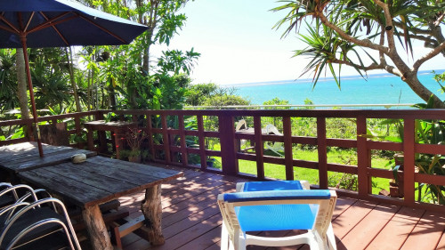 目の前は海。オーシャンビュー・ウッドデッキでBBQ!海や空の青さ、潮風に癒されます。 2LDK(85平米)の広々お部屋で自炊完備。