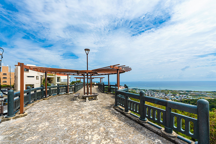 津覇集落まで車で約5分、護佐丸バスで約5分、自転車で約10分