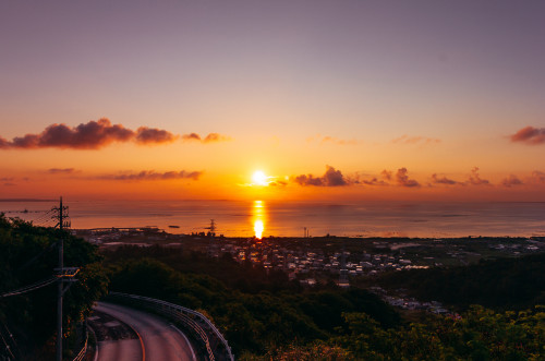 村内の丘陵地に沿ったハンタ道には中城城跡をはじめ、ペリー提督奥地探検隊が立ち寄った岩や沖縄戦の戦跡など多くの史跡を見ることができます。道中で1番の絶景スポットである「東太陽橋(あがりてぃだばし)」は、朝日を拝めるポイントとしても有名です。東側に広がる村落風景と中城湾が重なる美しい風景は散策する人を楽しませてくれます。