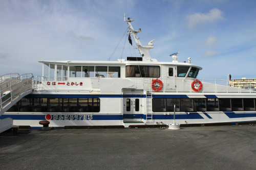 阿波連園地から渡嘉敷港まで車で約18分、渡嘉敷港から泊港まで高速船で35分、泊港から美栄橋駅まで徒歩約10分