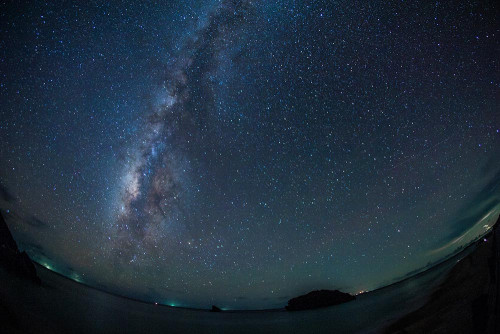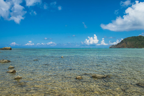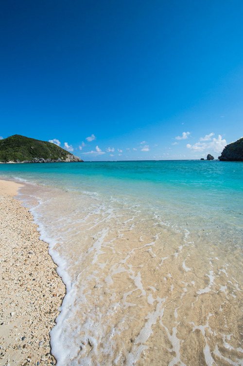 真っ白な砂浜と青いグラデーションの海が美しい静かな浜辺