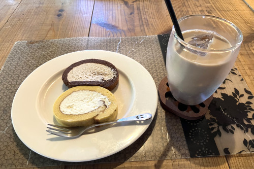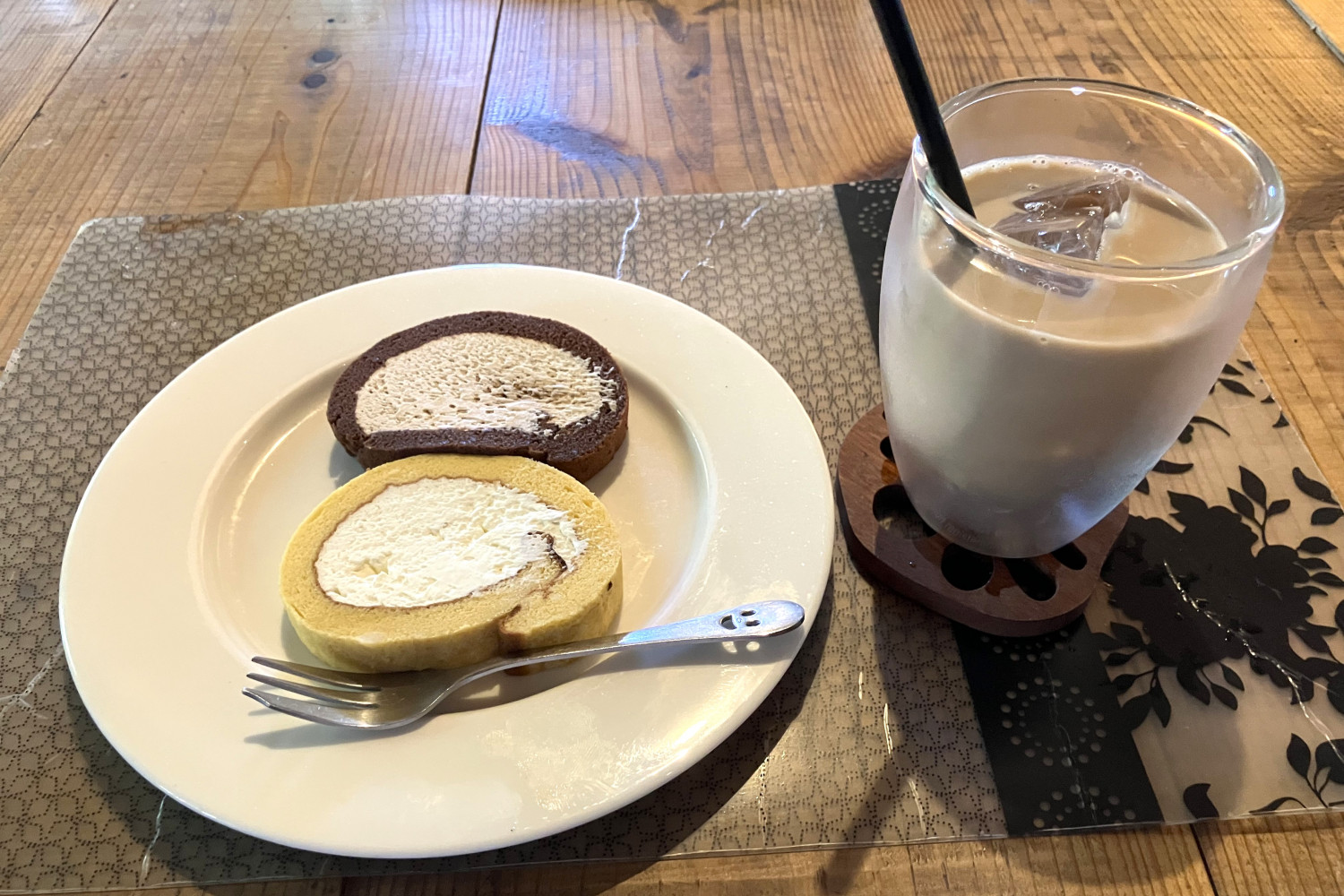 店名にもなっている名物は、地元・与那国産のはちみつをふんだんに使った「しっとりロールケーキ」。ふわふわ食感とやさしい甘さが絶妙で、観光途中のティータイムにぴったりの一品です。
