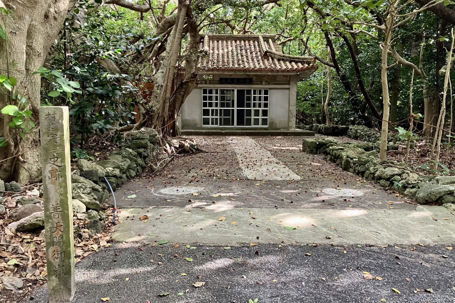 島の東南に位置し、海岸植物としての琉球蓮の葉桐(トゥカナッジャ)やテリハボクのめだつ森の中にあります。