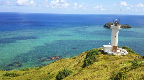 青い海原を背に牛がのんびり草をはむ 石垣島最北端の爽快な眺め