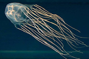 5月~10月頃、県内ほぼ全域に発生するクラゲです。かさが半透明のため水中で見えにくく、水深50cmほどの浅い場所にも来るため要注意です。刺されると激痛を生じ、みみずばれのような跡になります。