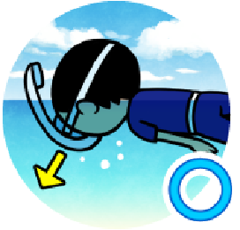 あまり下を向きすぎると、シュノーケルが水面下に入り水を飲み込んでしまうのでNG。
