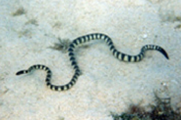 ウミヘビはコブラの仲間で、強い神経毒を持ちます。咬まれると30分前後で呼吸困難や血圧降下、全身麻痺になる危険性があるため、すみやかに海からあがって応急処置を施しましょう。