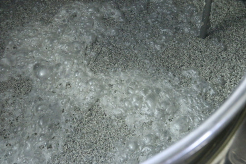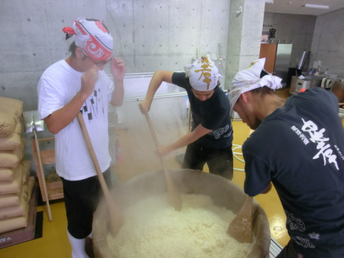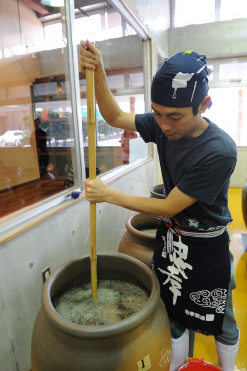 ちなみに壁についた黒いシミのようなものも実は黒麹菌。ほかの菌が入ってくるのを防ぐ役割をしているそう。