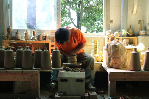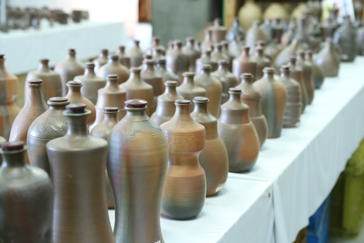 上薬(うわぐすり)を一切使わず、焼締めで作られるそれらは、炎の文様である窯変が独特の表情を見せてれます。