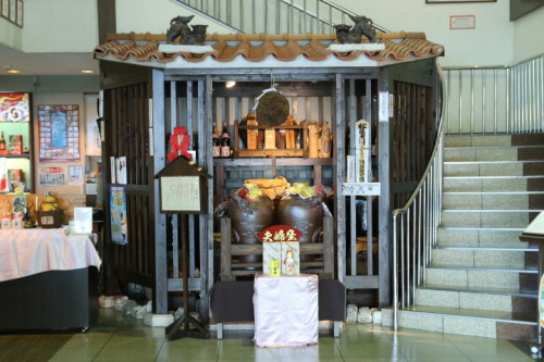 さらに奥には「座間味宗徳コレクション」があり、ここにはビール瓶やウィスキーの古瓶に入れられた泡盛や、人間国宝の金城次郎作の抱瓶など、ここでしか見られない珍しい泡盛を見ることができます。