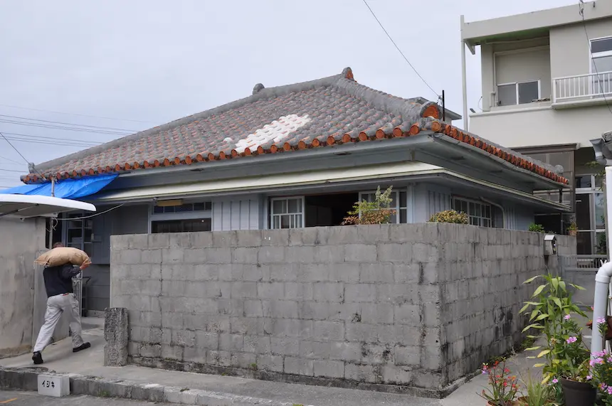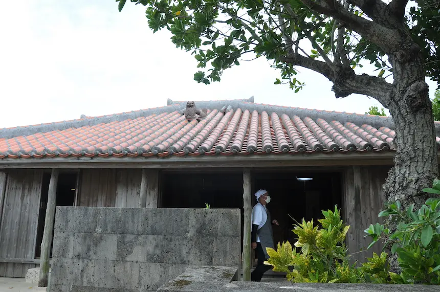 かつての糸満の漁村をイメージして建てられた伝統建築の家屋がある。