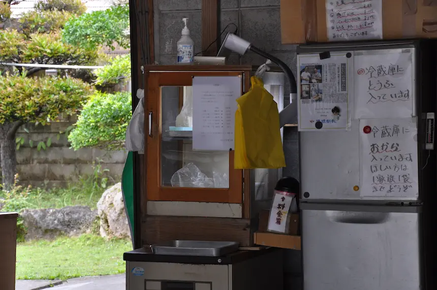 玉栄さんのゆし豆腐は、舌触りがびっくりするほどの滑らかさ。豆乳は全く水っぽさがなく濃厚。そして、島豆腐は塩加減がやさしくて柔らかいのに、しっかりしています。無人売店が品切れだったら、奥に声をかけてみましょう。タイミングがよければ、作り立てのあちこーこーがでてくるかもしれません。