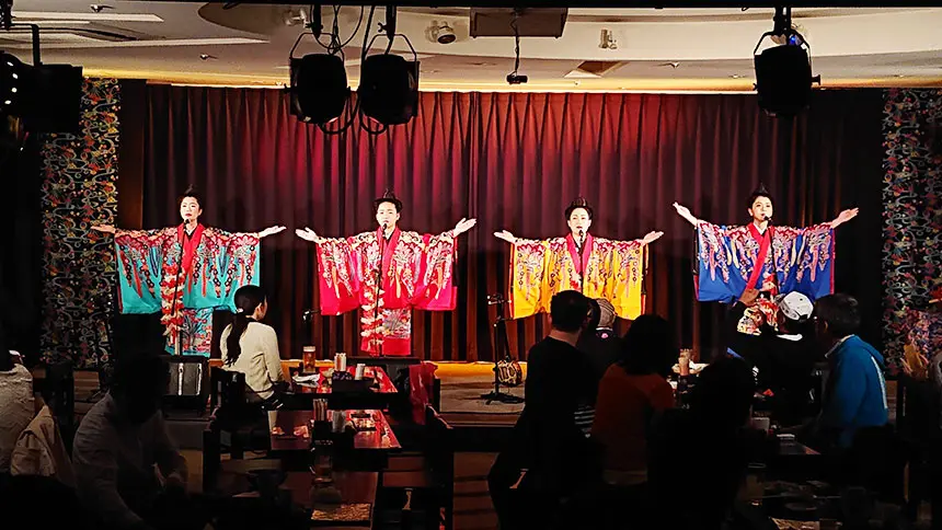 沖縄民謡界の大御所・知名定男がプロデュースする女性4人組沖縄ポップスグループ「ネーネーズ」が出演するライブハウス。沖縄ポップスから本格的な民謡まで、幅広く楽しめる。