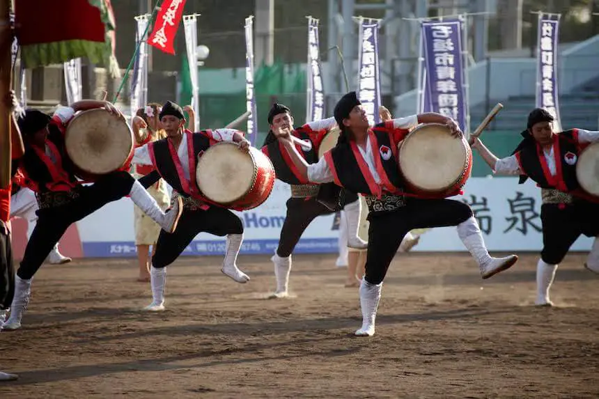 また「唐船ドーイ」は、エイサーの定番曲でもあります。エイサーは、沖縄本島中部を中心に発展してきた伝統芸能で、民謡曲に合わせて太鼓を叩きながら踊るものです。もともとはお盆(沖縄では旧盆)のとき、先祖供養のために行われていた行事ですが、近年はエイサー自体が伝統芸能の一つとして定着しており、時期を問わずイベントなどでも披露されるようになっています。