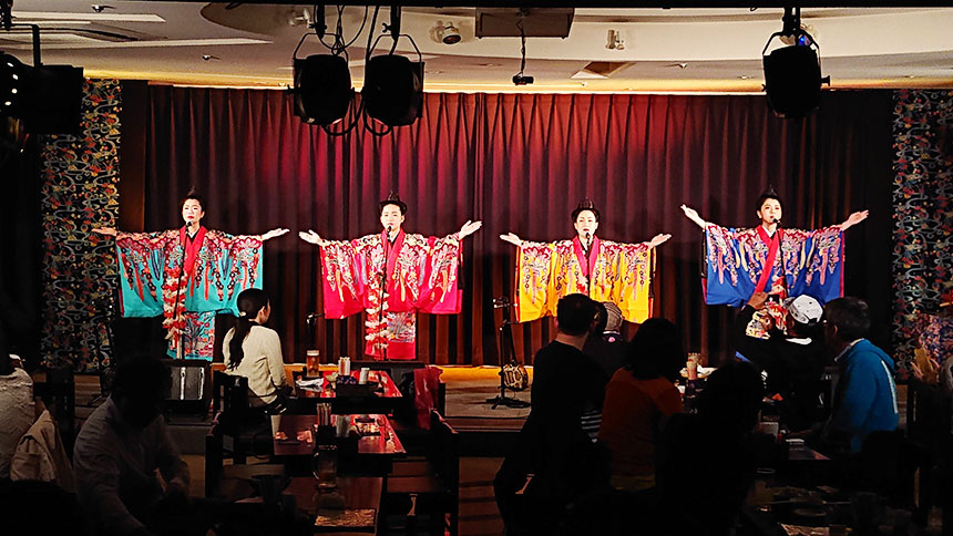 沖縄には、食事やお酒とともに沖縄民謡を楽しめるお店がたくさんあります。今回はその中から、那覇市の国際通りにある2軒をご紹介。「沖縄民謡を聴くのは初めて」という人も、気軽に足を運んでみて。