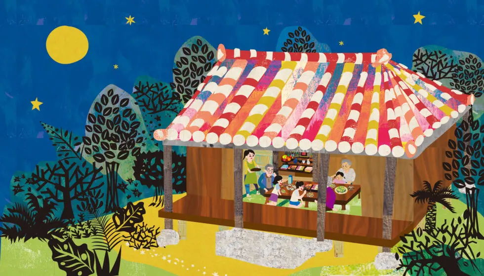 沖縄では旧暦に合わせた行事がたくさんあり、旧暦が記載されているカレンダーや手帳を持っているウチナーンチュも多くいます。お盆も旧暦行事の一つで、旧暦の7月13日~15日(今年は8月10日~12日)にかけて行われます。初日の13日は「ウンケー(お迎え)」、14日は「ナカヌヒー(中の日)」、15日は「ウークイ(お送り)」と呼ばれ、期間中は仏壇のある家に家族や親族が集まってご先祖様と一緒に過ごします。 ウンケーの日には仏壇を掃除して、ウンケージューシー(炊き込みご飯)をお供えしてご先祖様を迎えます。ウークイの日には、お供えしていた重箱やごちそうを囲んでみんなで過ごします。締めくくりは“あの世のお金”である「ウチカビ」を燃やして、また一年みんなが幸せに過ごせますようにと願いを込めて、ご先祖様を見送ります。